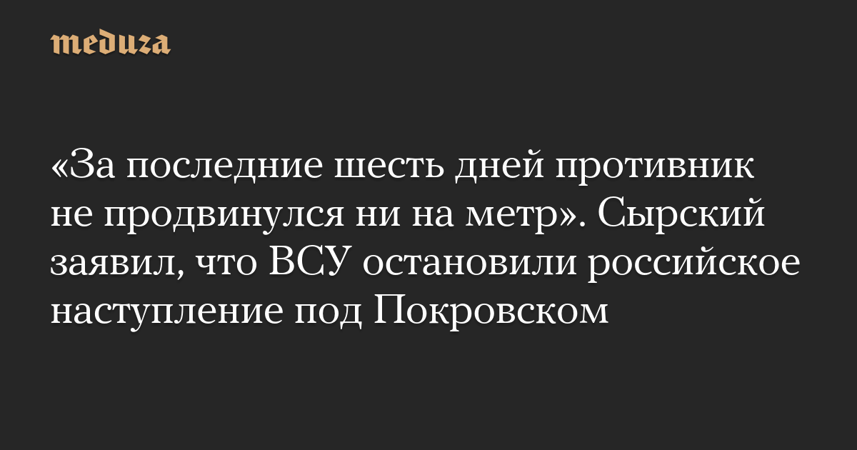 «За последние шесть дней противник не продвинулся ни на метр». Сырский заявил, что ВСУ остановили российское наступление под Покровском