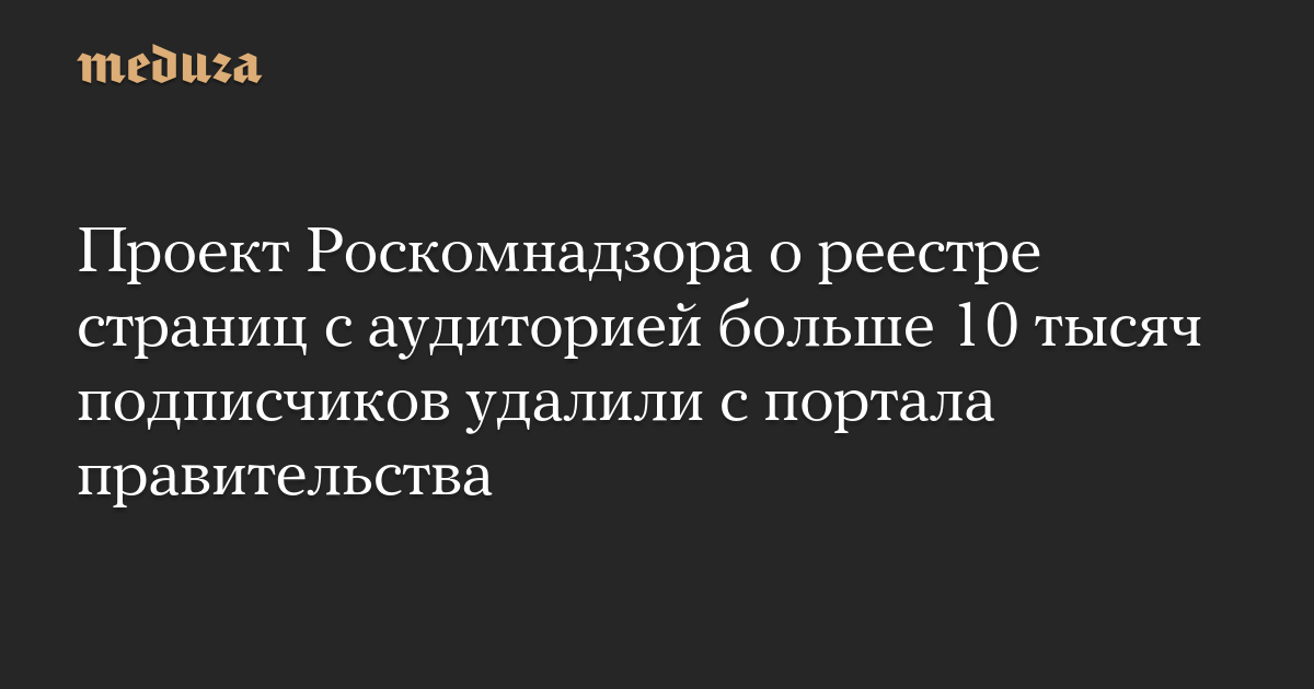 С официального портала, на котором публикуются правовые акты, удалили проект Роскомнадзора о реестре страниц с аудиторией больше 10 тысяч подписчиков.