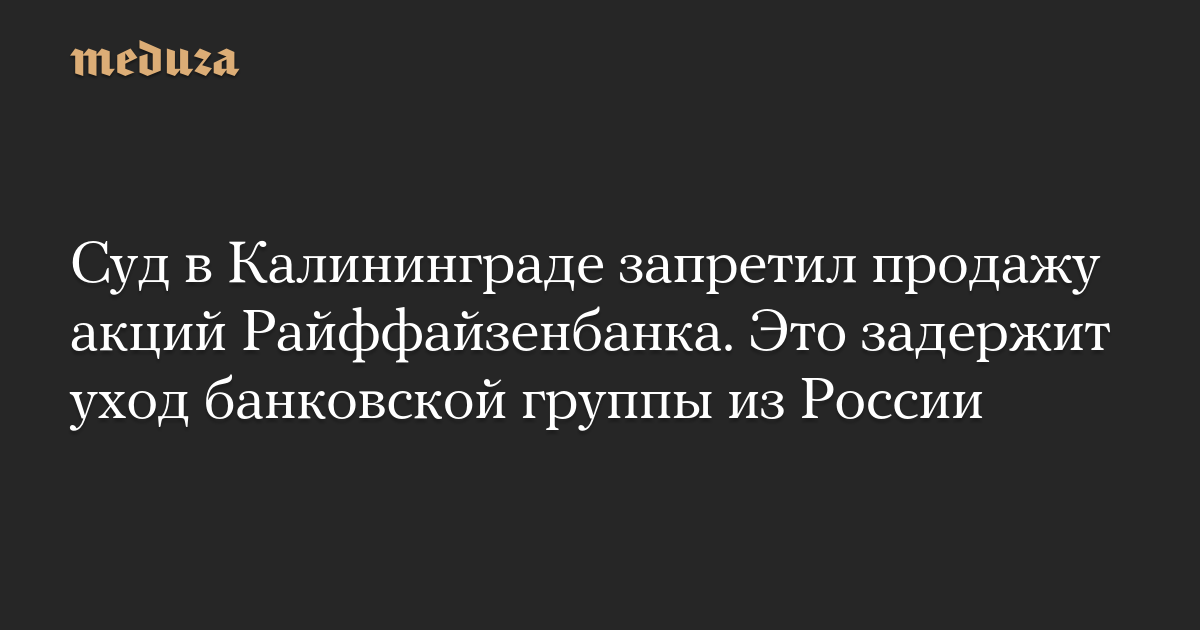 Суд в Калининграде запретил продажу акций Райффайзенбанка. Это задержит уход банковской группы из России