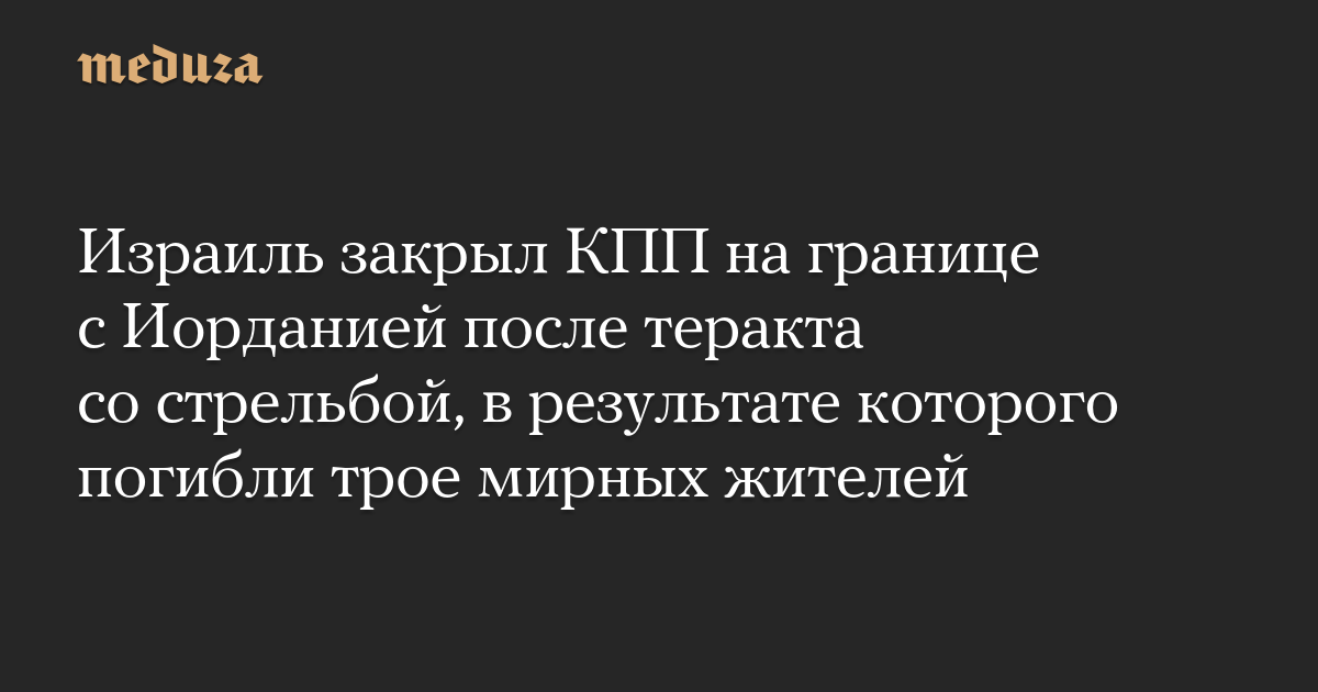 Израиль закрыл КПП на границе с Иорданией после теракта со стрельбой, в результате которого погибли трое мирных жителей