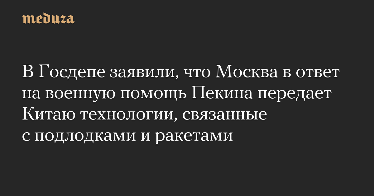 В Госдепе заявили, что Москва в ответ на военную помощь Пекина передает Китаю технологии, связанные с подлодками и ракетами