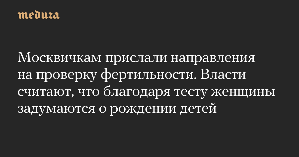 Москвичкам прислали направления на проверку фертильности. Власти считают, что благодаря тесту женщины задумаются о рождении детей