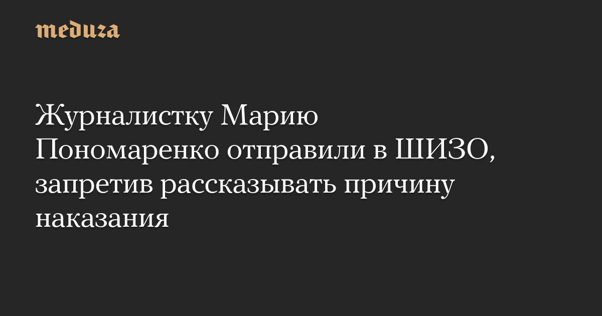 Журналистку Марию Пономаренко отправили в ШИЗО, запретив рассказывать причину наказания