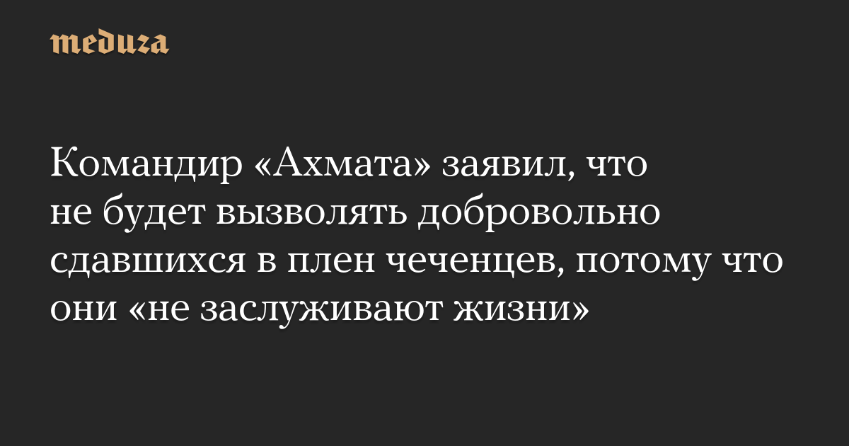 Командир «Ахмата» заявил, что не будет вызволять добровольно сдавшихся в плен чеченцев, потому что они «не заслуживают жизни»