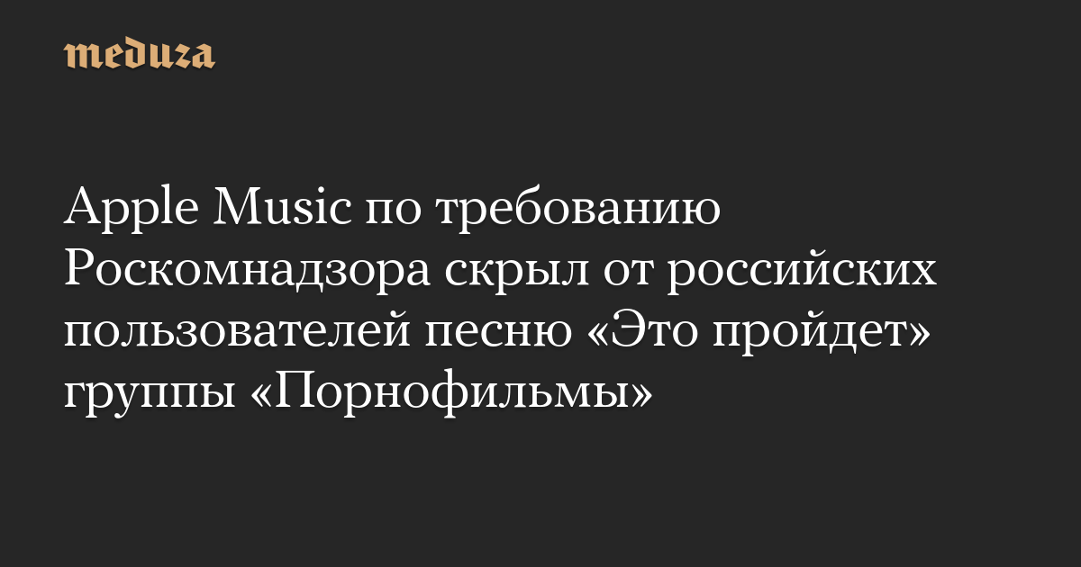 Apple Music по требованию Роскомнадзора скрыл от российских пользователей песню «Это пройдет» группы «Порнофильмы»