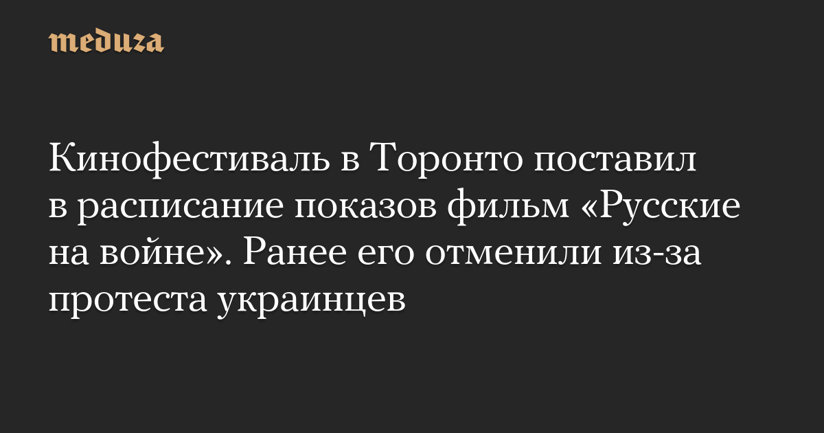 Кинофестиваль в Торонто поставил в расписание показов фильм «Русские на войне». Ранее его отменили из-за протеста украинцев