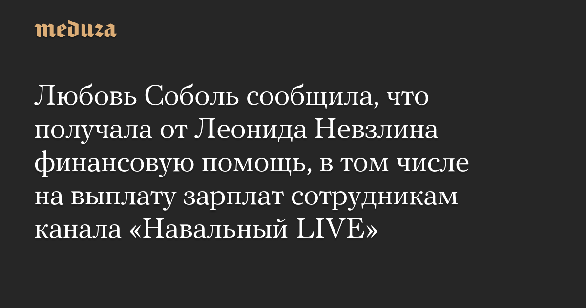 Любовь Соболь опубликовала в соцсети X (ранее твиттер) пост, в котором рассказала, что получала финансовую помощь от бывшего топ-менеджера ЮКОСа Леонида Невзлина, в том числе средства для «Навальный LIVE».