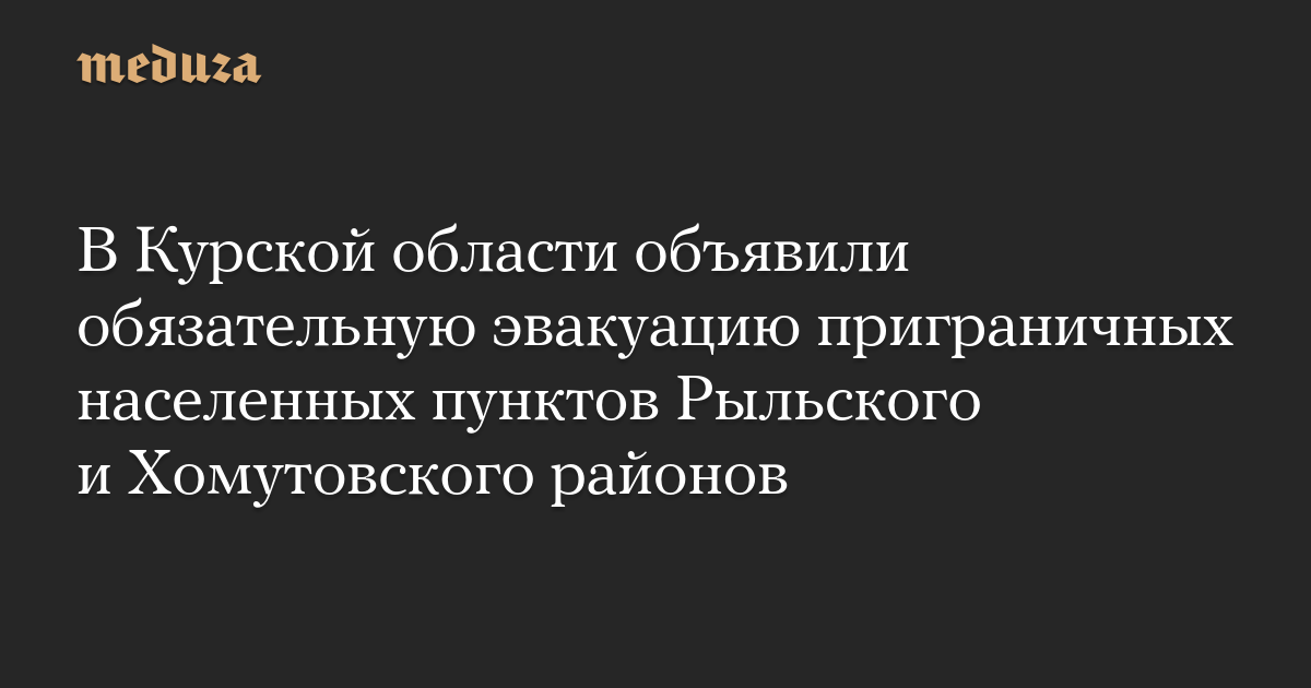 Оперативный штаб Курской области принял решение об обязательной эвакуации населенных пунктов Рыльского и Хомутовского районов, которые находятся в 15 километрах от границы с Украиной, объявил губернатор Алексей Смирнов.