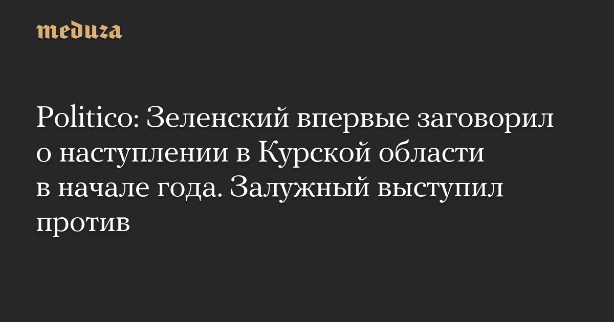 Politico: Зеленский впервые заговорил о наступлении в Курской области в начале года. Залужный выступил против
