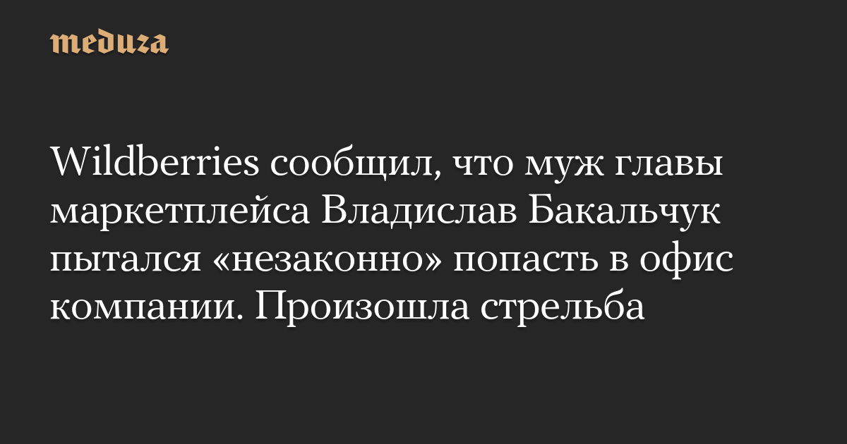Wildberries сообщил, что муж главы маркетплейса Владислав Бакальчук пытался «незаконно» попасть в офис компании. Произошла стрельба