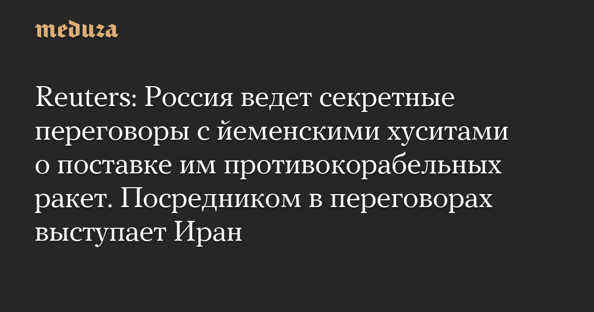 Reuters: Россия ведет секретные переговоры с йеменскими хуситами о поставке им противокорабельных ракет. Посредником в переговорах выступает Иран