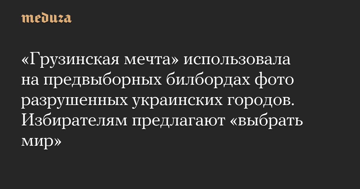 «Грузинская мечта» использовала на предвыборных билбордах фото разрушенных украинских городов. Избирателям предлагают «выбрать мир»