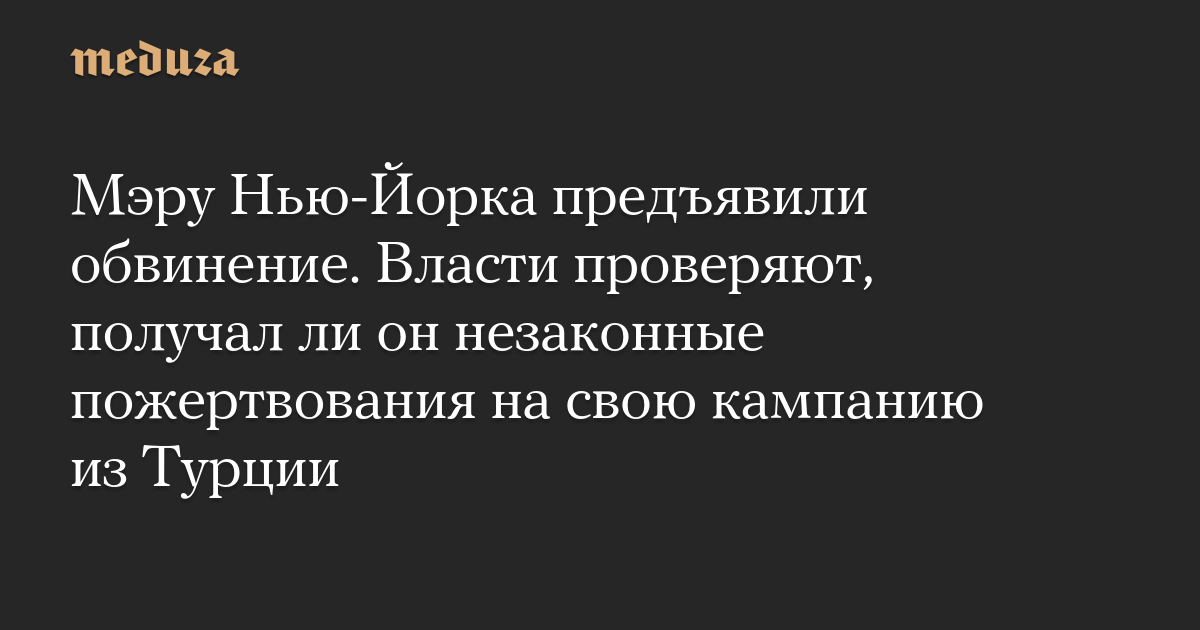 Мэру Нью-Йорка предъявили обвинение. Власти проверяют, получал ли он незаконные пожертвования на свою кампанию из Турции
