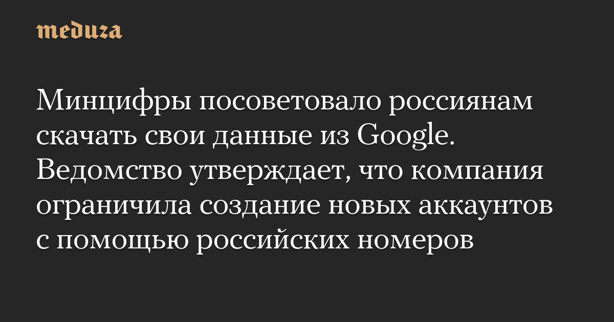 Минцифры посоветовало россиянам скачать свои данные из Google. Ведомство утверждает, что компания ограничила создание новых аккаунтов с помощью российских номеров