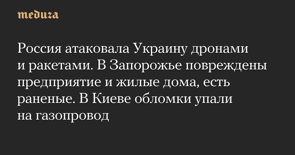 Россия атаковала Украину дронами и ракетами. В Запорожье повреждены предприятие и жилые дома, есть раненые. В Киеве обломки упали на газопровод
