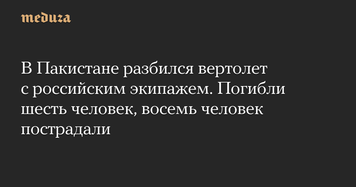 В Пакистане разбился вертолет с российским экипажем. Погибли шесть человек, восемь человек пострадали