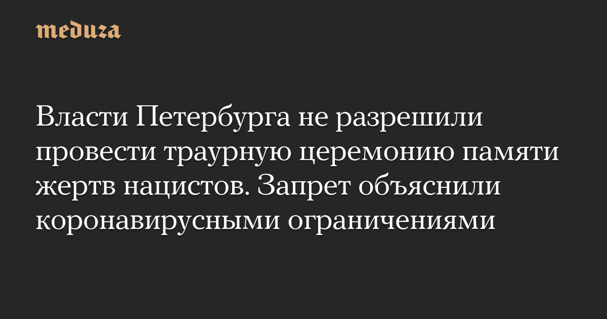 Власти Петербурга не разрешили провести траурную церемонию памяти жертв нацистов. Запрет объяснили коронавирусными ограничениями