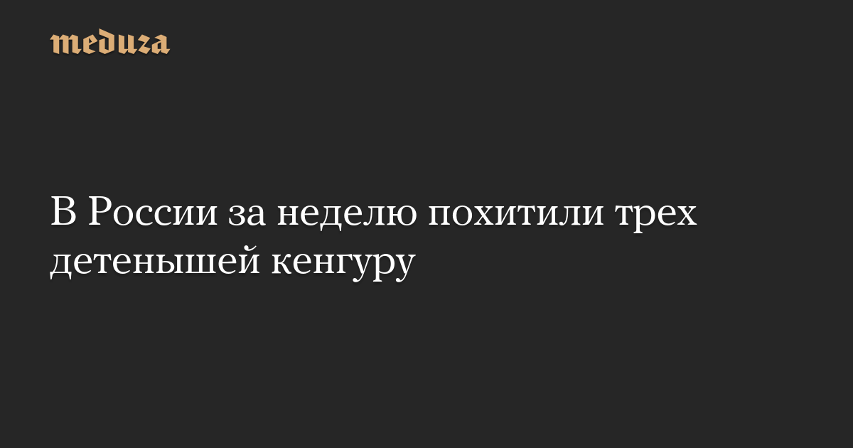 Одного кенгуру украли из зоопарка в Ярославле в ночь на 27 сентября, сообщает «Коммерсант». В зоопарке рассказали, что детеныш кенгуру по кличке Крош пропал из вольера около четырех часов утра. По неофициальным данным, которые приводит Национальная служба новостей, во время кражи в зоопарке не работали камеры наблюдения, был поврежден кабель.