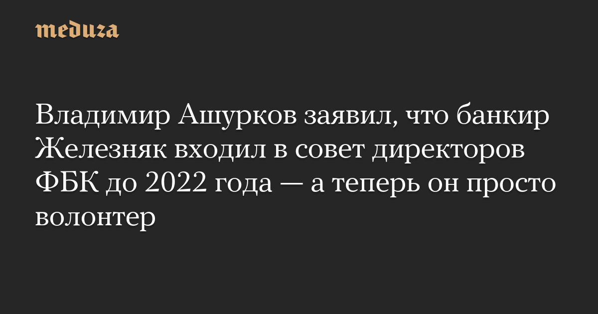 Владимир Ашурков заявил, что банкир Железняк входил в совет директоров ФБК до 2022 года — а теперь он просто волонтер