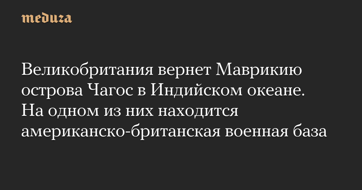 Великобритания вернет Маврикию острова Чагос в Индийском океане. На одном из них находится американско-британская военная база