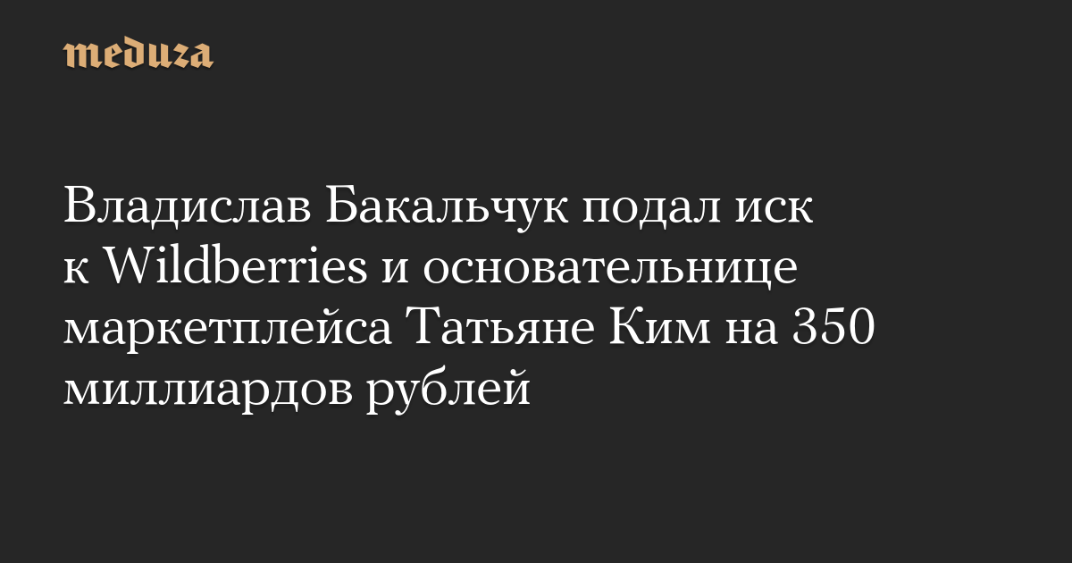 Муж основательницы Wildberries Владислав Бакальчук подал иск к ООО «Вайлдберриз», Татьяне Ким (Бакальчук) и ООО «РВБ» (объединенное предприятие Wildberries и оператора рекламы Russ) более чем на 350 миллиардов рублей. Об этом сообщает Forbes со ссылкой на представителя Бакальчука.