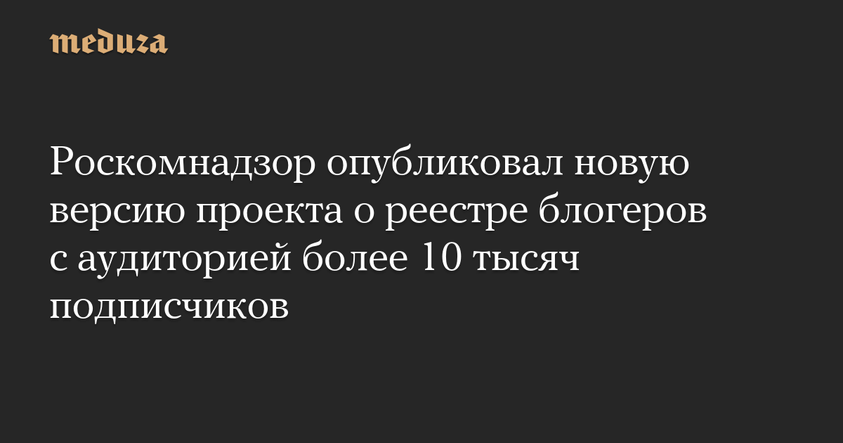 Роскомнадзор опубликовал новую версию проекта о реестре блогеров с аудиторией более 10 тысяч подписчиков