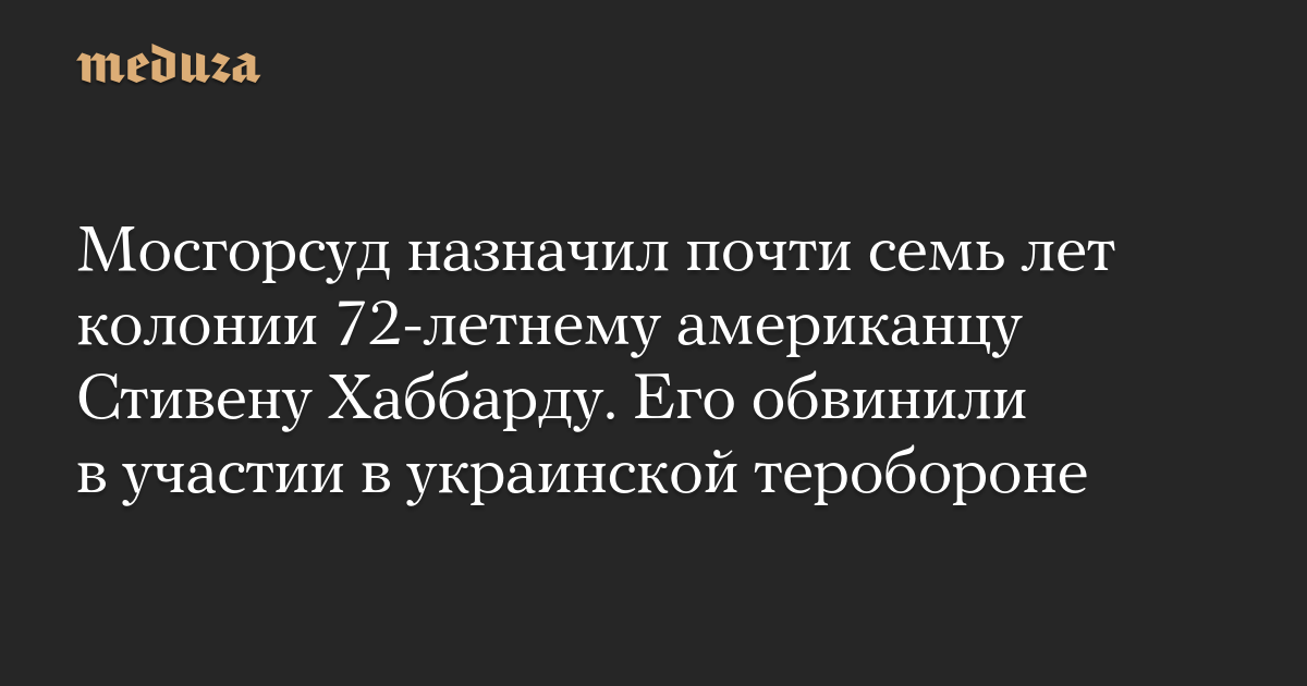 Московский городской суд приговорил к шести годам и десяти месяцам колонии общего режима 72-летнего гражданина США Стивена Хаббарда, признав его виновным в участии в боевых действиях в рядах ВСУ в качестве наемника (часть 3 статьи 359 УК), сообщает «Медиазона».