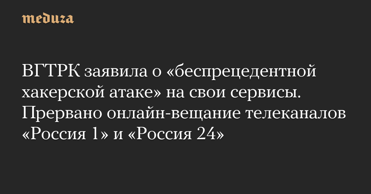 ВГТРК заявила о «беспрецедентной хакерской атаке» на свои сервисы. Прервано онлайн-вещание телеканалов «Россия 1» и «Россия 24»