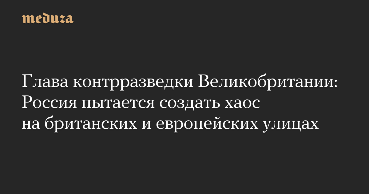 Глава контрразведки Великобритании: Россия пытается создать хаос на британских и европейских улицах