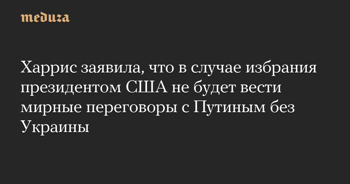 Вице-президент США и кандидат на пост главы государства от Демократической партии Камала Харрис заявила в интервью телеканалу CBS, что в случае победы на выборах не будет вести без Киева переговоры с Владимиром Путиным по урегулированию войны в Украине.