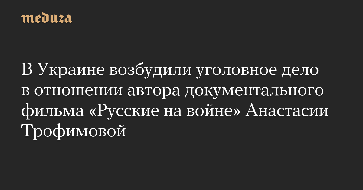 Служба безопасности Украины возбудила уголовное дело в отношении режиссера документального фильма «Русские на войне» Анастасии Трофимовой. Об этом сообщил председатель комитета по вопросам свободы слова Верховной Рады Ярослав Юрчишин, ссылаясь на ответ офиса генерального прокурора Украины.