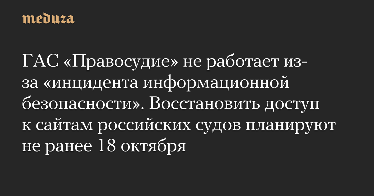 ГАС «Правосудие» не работает из-за «инцидента информационной безопасности». Восстановить доступ к сайтам российских судов планируют не ранее 18 октября