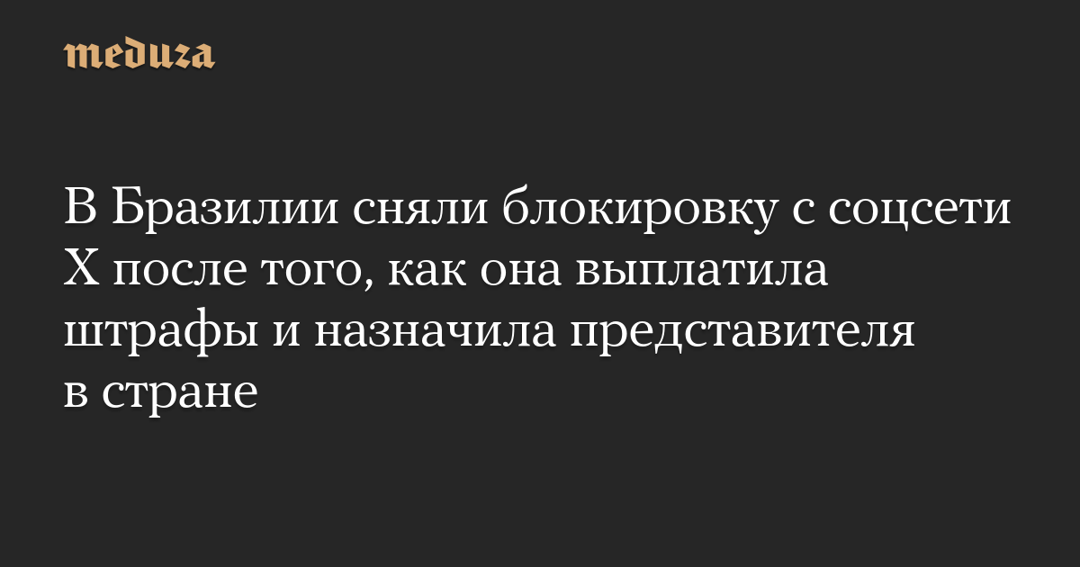 В Бразилии сняли блокировку с соцсети X после того, как она выплатила штрафы и назначила представителя в стране