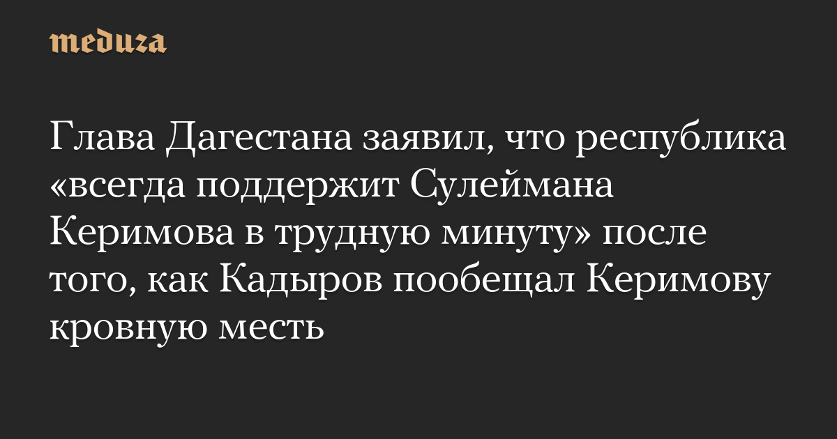 Глава Дагестана заявил, что республика «всегда поддержит Сулеймана Керимова в трудную минуту» после того, как Кадыров пообещал Керимову кровную месть