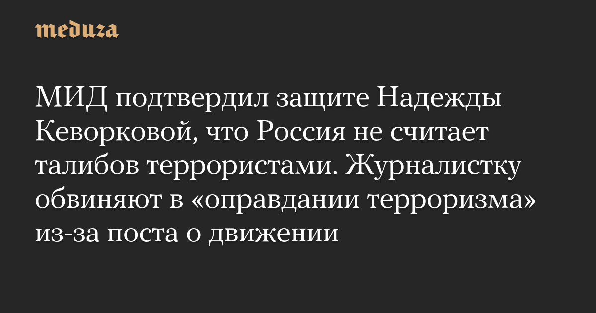 МИД подтвердил защите Надежды Кеворковой, что Россия не считает талибов террористами. Журналистку обвиняют в «оправдании терроризма» из-за поста о движении
