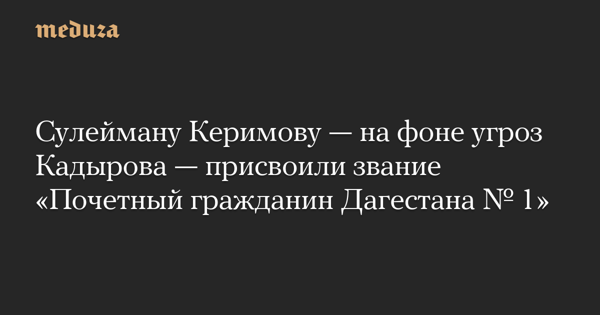 Сулейману Керимову — на фоне угроз Кадырова — присвоили звание «Почетный гражданин Дагестана № 1»