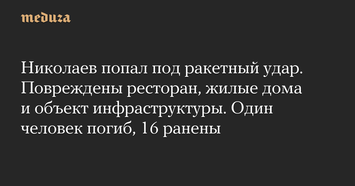 Николаев попал под ракетный удар. Повреждены ресторан, жилые дома и объект инфраструктуры. Один человек погиб, 16 ранены