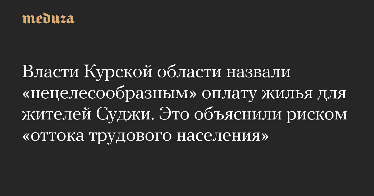 Власти Курской области назвали «нецелесообразным» оплату жилья для жителей Суджи. Это объяснили риском «оттока трудового населения»