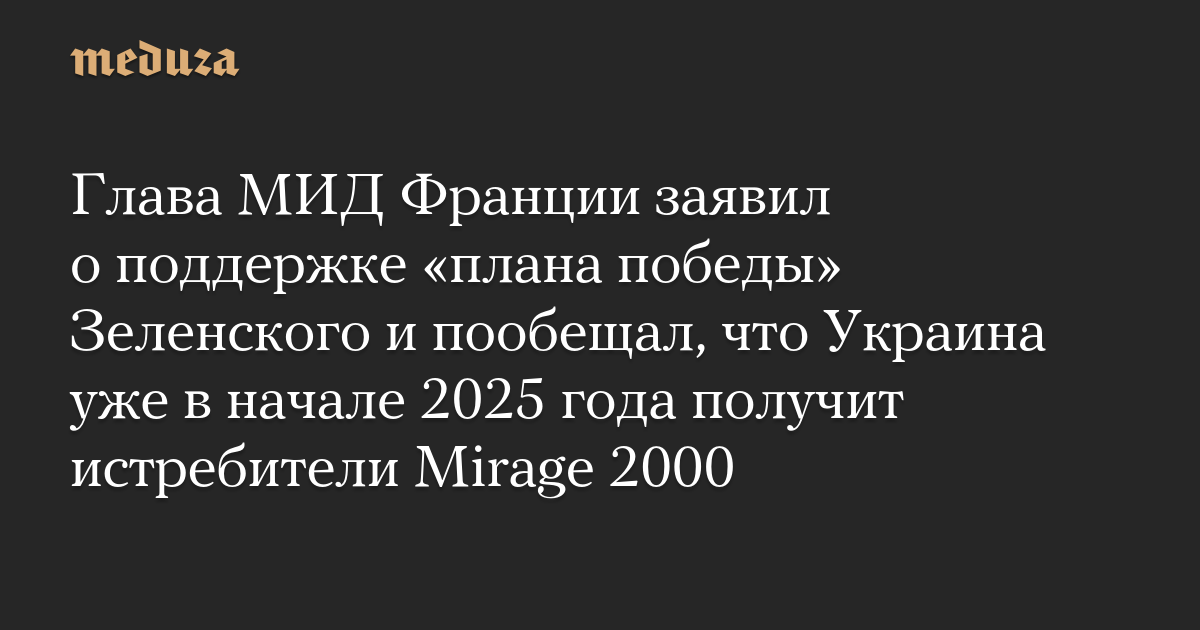 Глава МИД Франции заявил о поддержке «плана победы» Зеленского и пообещал, что Украина уже в начале 2025 года получит истребители Mirage 2000