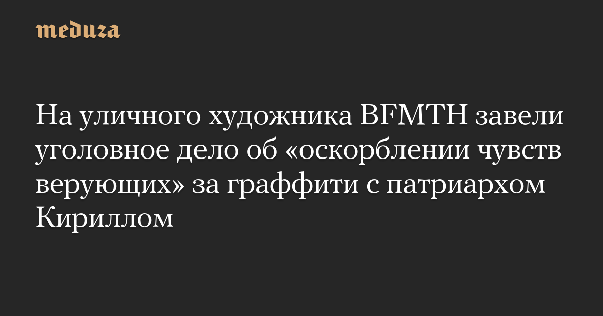 На уличного художника BFMTH завели уголовное дело об «оскорблении чувств верующих» за граффити с патриархом Кириллом