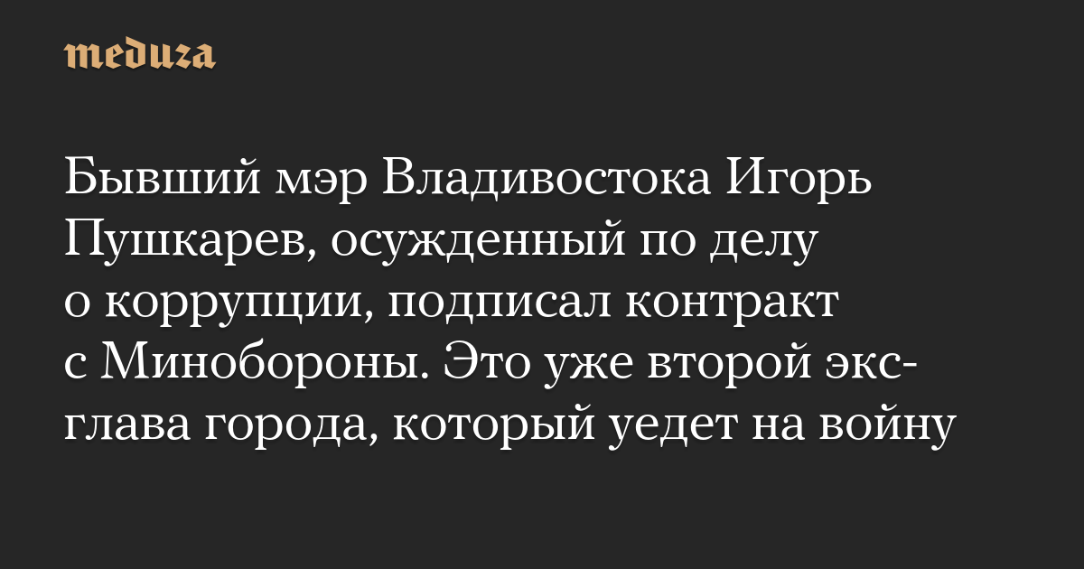 Бывший мэр Владивостока Игорь Пушкарев, осужденный по делу о коррупции, подписал контракт с Минобороны. Это уже второй экс-глава города, который уедет на войну