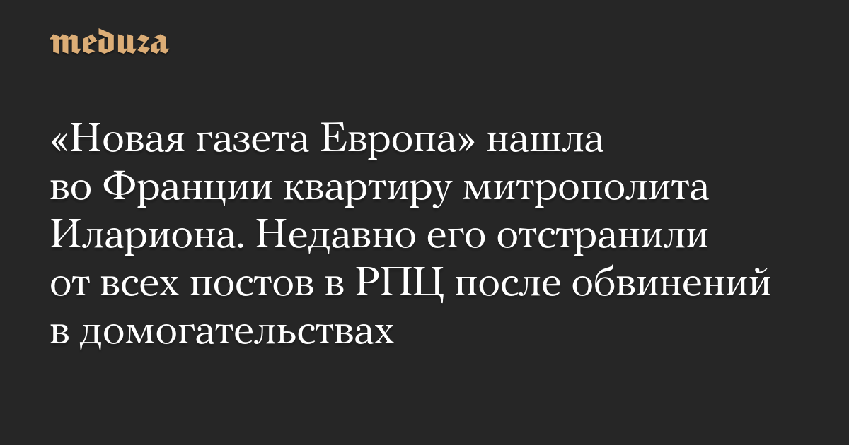 «Новая газета Европа» нашла во Франции квартиру митрополита Илариона. Недавно его отстранили от всех постов в РПЦ после обвинений в домогательствах