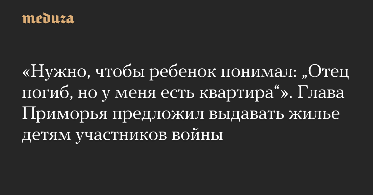 «Нужно, чтобы ребенок понимал: „Отец погиб, но у меня есть квартира“». Глава Приморья предложил выдавать жилье детям участников войны