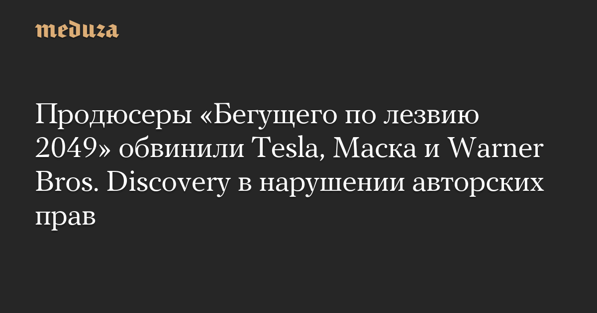 Продюсеры «Бегущего по лезвию 2049» обвинили Tesla, Маска и Warner Bros. Discovery в нарушении авторских прав