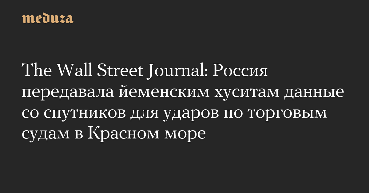 The Wall Street Journal: Россия передавала йеменским хуситам данные со спутников для ударов по торговым судам в Красном море