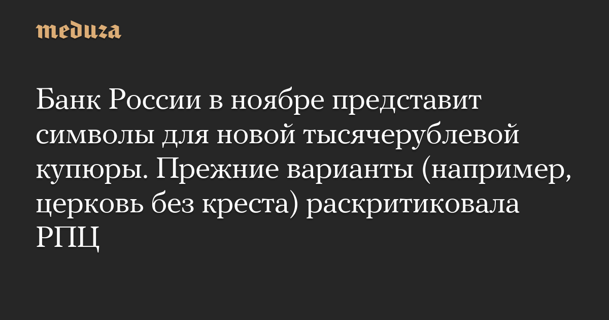 Банк России в ноябре представит символы для новой тысячерублевой купюры. Прежние варианты (например, церковь без креста) раскритиковала РПЦ
