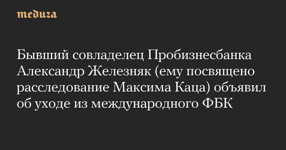 Бывший совладелец Пробизнесбанка Александр Железняк (ему посвящено расследование Максима Каца) объявил об уходе из международного ФБК