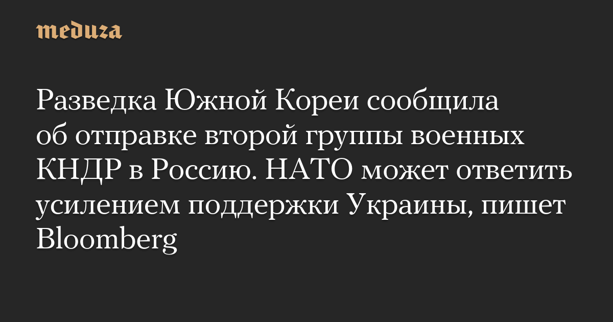 Разведка Южной Кореи сообщила об отправке второй группы военных КНДР в Россию. НАТО может ответить усилением поддержки Украины, пишет Bloomberg