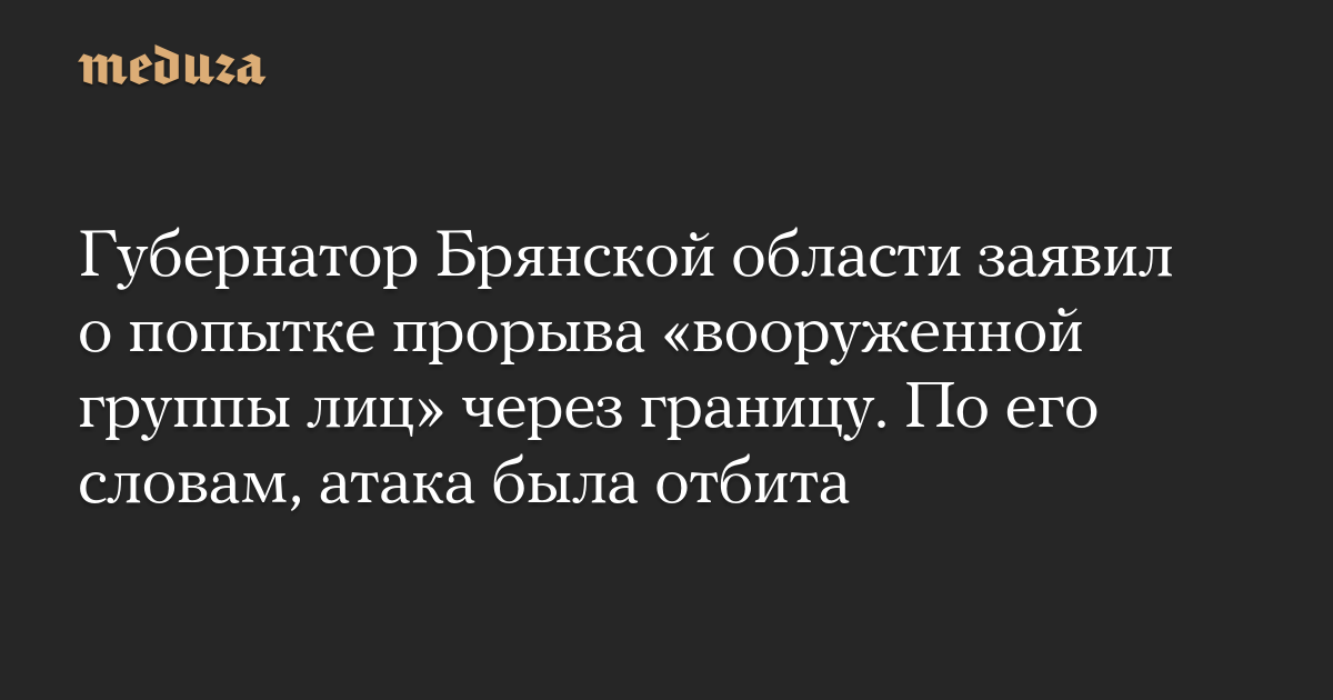 Губернатор Брянской области заявил о попытке прорыва «вооруженной группы лиц» через границу. По его словам, атака была отбита
