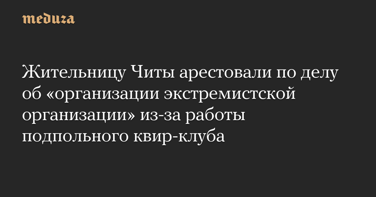 Жительницу Читы арестовали по делу об «организации экстремистской организации» из-за работы подпольного квир-клуба